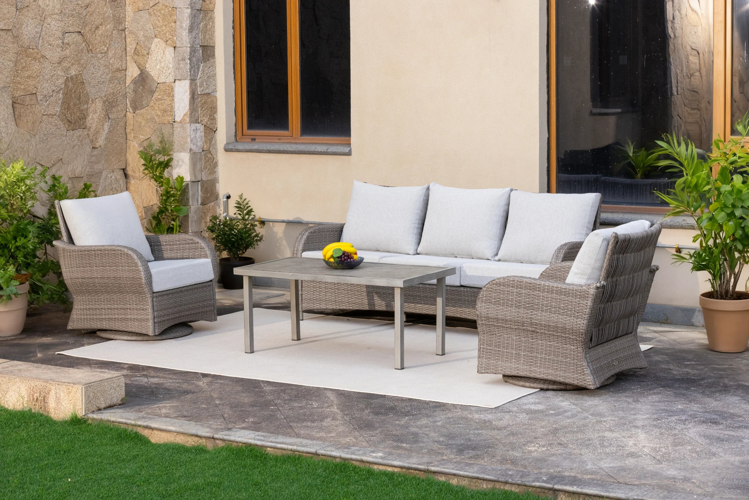 Seat cushions are filled with high-resilience polyurethane foam for lasting support, while back cushions use polyester fiber filling for a softer, more comfortable feel.This structure is designed to provide consistent support and recover its shape after regular use, reducing the likelihood of permanent sagging.