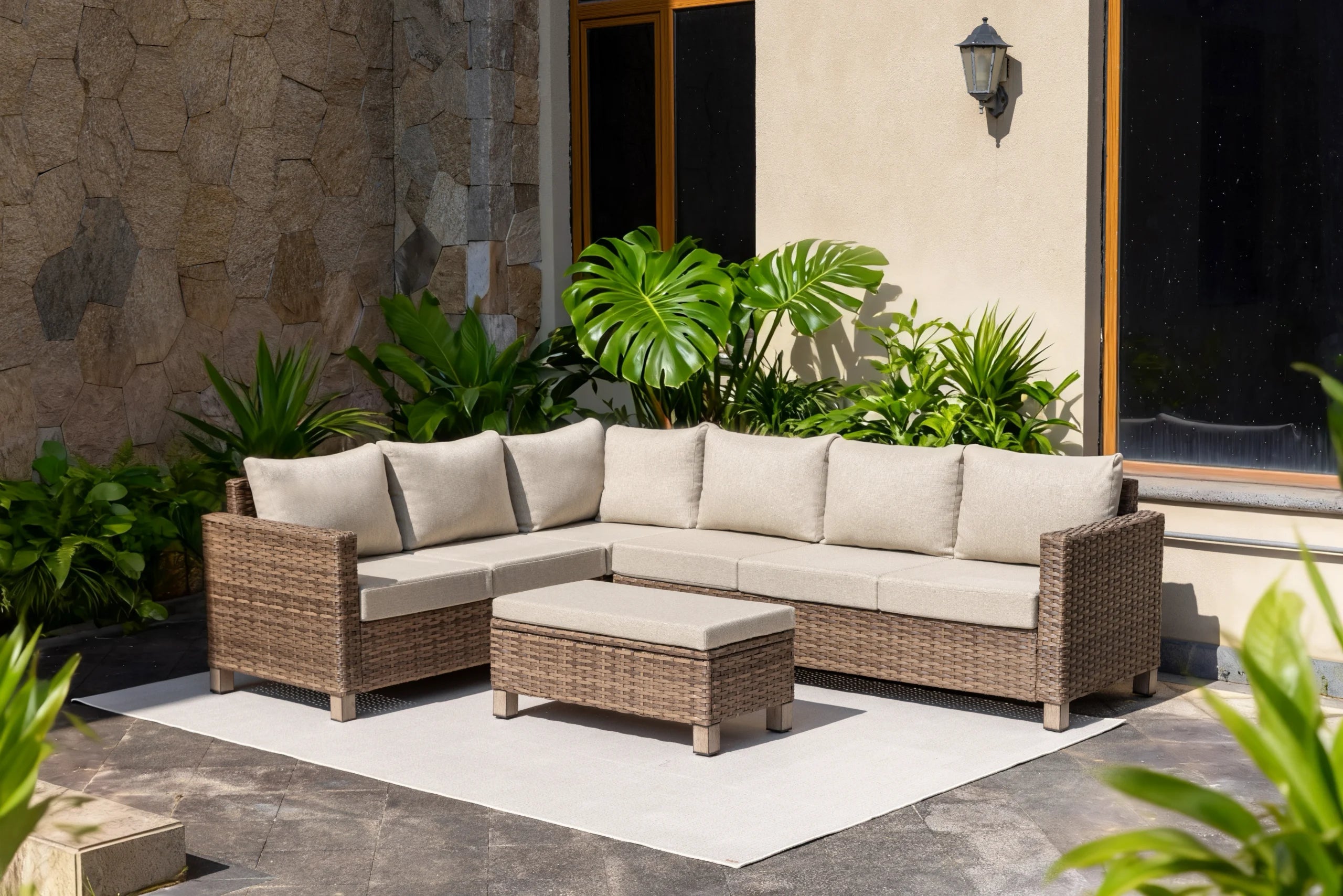 Seat cushions are filled with high-resilience polyurethane foam for lasting support, while back cushions use polyester fiber filling for a softer, more comfortable feel.This structure is designed to provide consistent support and recover its shape after regular use, reducing the likelihood of permanent sagging.
